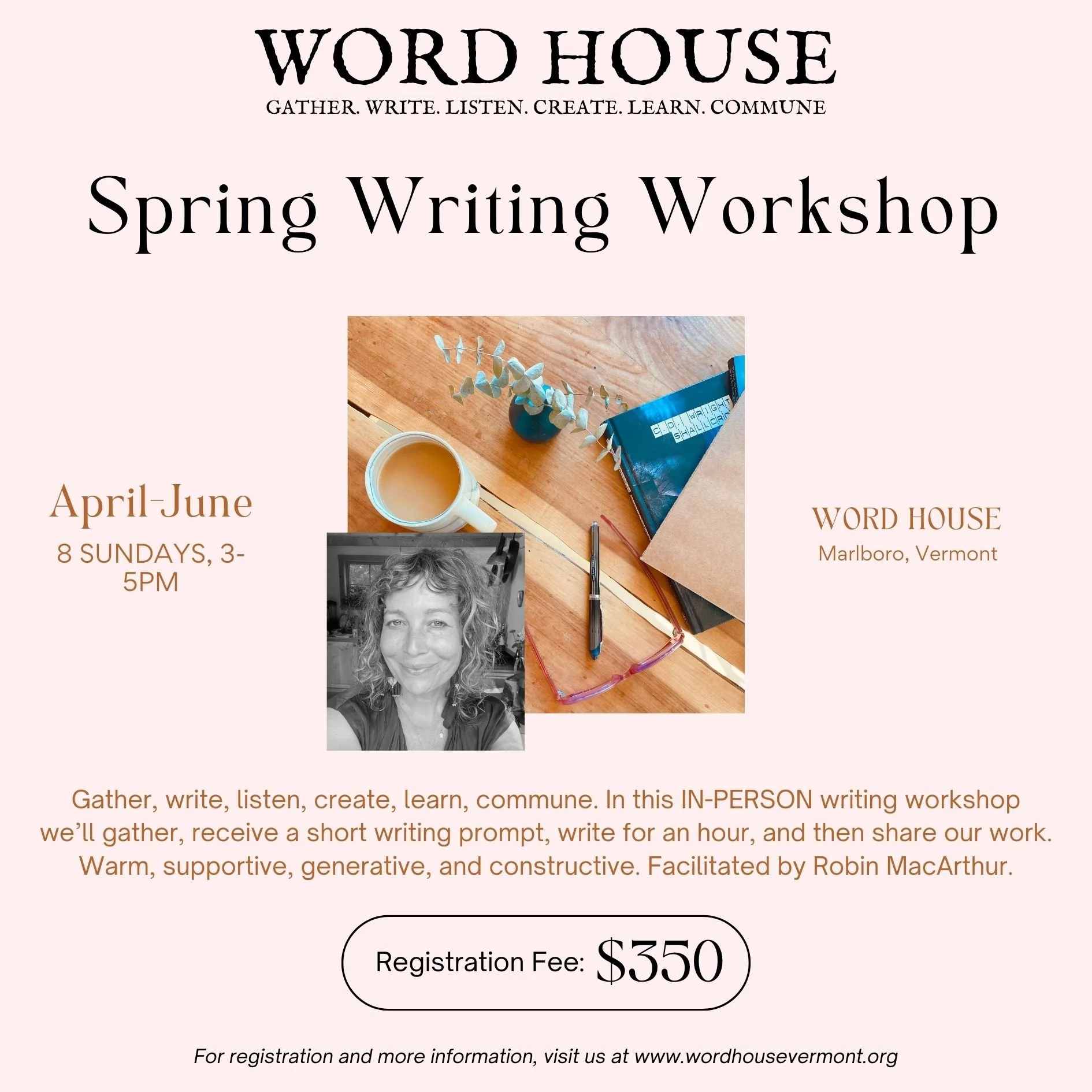 TO APPLY, please send a message to robin@wordhousebrattleboro.com responding (in some way) to the following questions: What would you like us to know about you? Have you written much before? (No is fine—there are no prerequisites to creativity.) What are you hoping to work on during your time at Word House? What draws you to this offering?